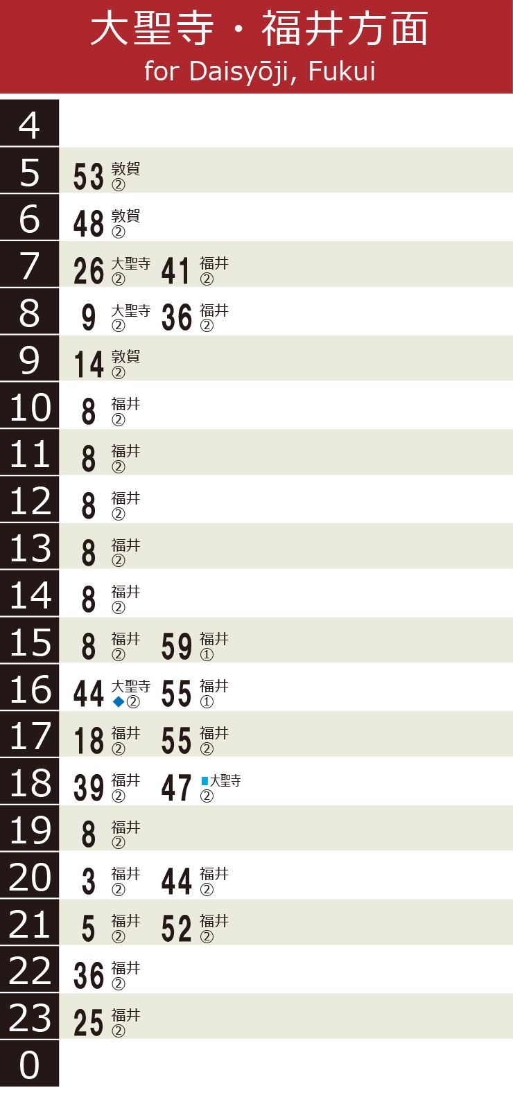 | 武生たけふ | 16,820 | 47,970 | 90,900 |