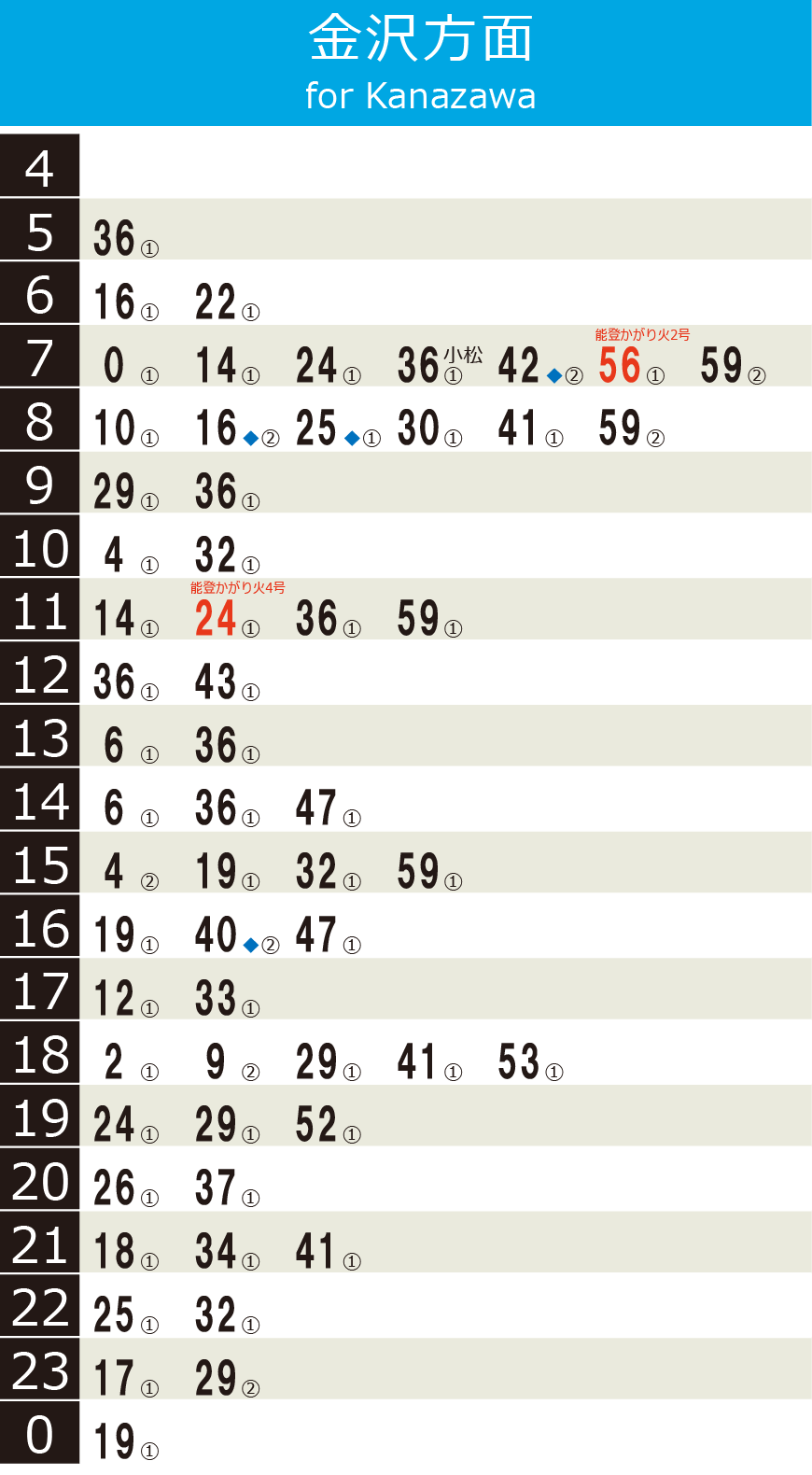 | 東金沢ひがしかなざわ | 4,230 | 12,050 | 22,820 |