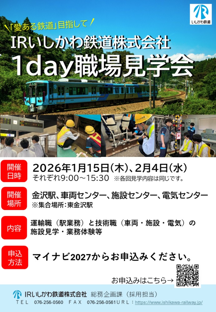 IRいしかわ鉄道の【1day職場見学会】を開催します!