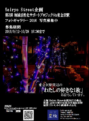 金沢星稜大学の学生らによる「地域活性化サポートプロジェクトin東金沢」の第3弾「フォトギャラリー2016」で展示する写真を募集します。