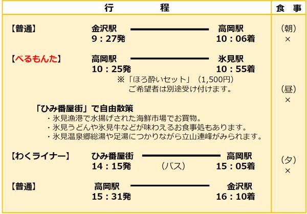 ※ IR・あいの風とやま鉄道・JRの乗車券、べるもんたの座席指定券、バス運賃が含まれます。