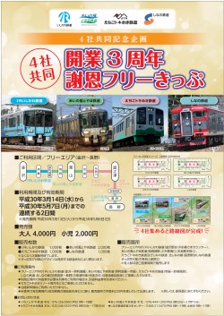特別企画乗車券「4社共同 開業3周年謝恩フリーきっぷ」