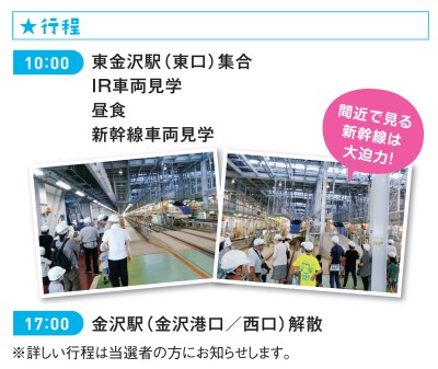 いしてつ愛あーるクラブ会員様限定で、北陸新幹線車両基地(白山総合車両所)見学ツアーを実施します。