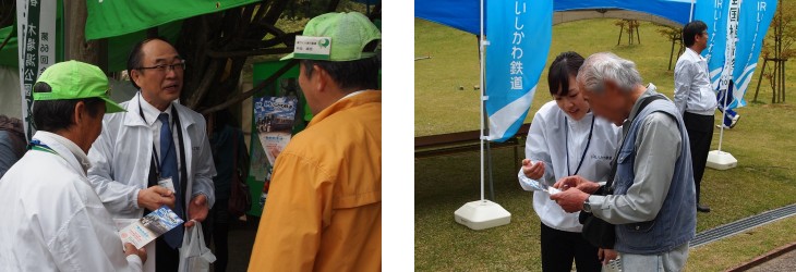 当社は、平成26年4月29日(火・祝)石川県森林公園にて開催された第31回県民みどりの祭典において、開業後における列車の運行や運賃、会社概要等を記したリーフレットを配布し、並行在来線及び当社について周知活動を実施しました。