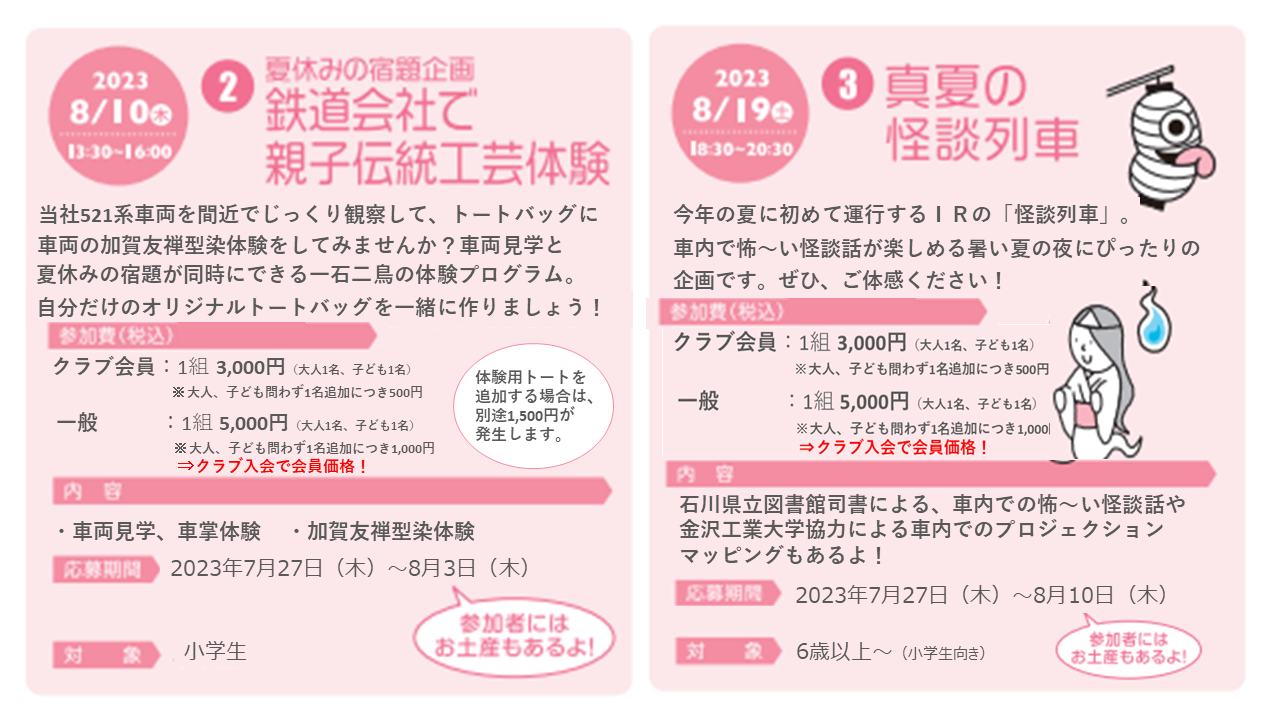 大好評につき、「②親子伝統工芸体験」および「③真夏の怪談列車」において追加募集を行います!