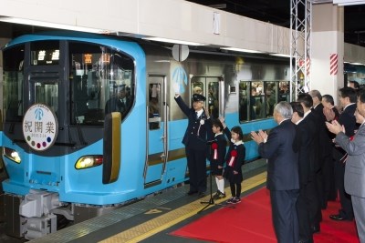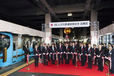 3月14日(土)金沢駅在来線6番ホームにて、「IRいしかわ鉄道開業記念出発式」を行いました。太田国土交通大臣、谷本会長、七野社長らによるテープカット及びくす玉開披のほか、いしてつ愛あーるクラブのこども会員代表による、運転士・車掌への花束贈呈が行われました。併せて、新デザインの列車もお披露目となり、午前6時52分、山岸副社長の出発合図で金沢駅を出発しました。