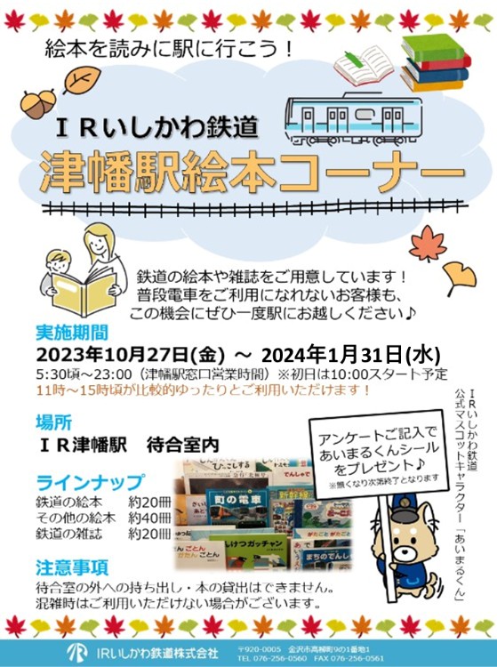 ご好評につき、津幡駅絵本コーナーの設置を1月末まで延長します!