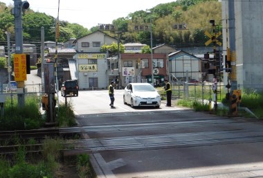 5月11日 福久往来踏切でのチラシ配布等の踏切啓発活動を行いました。