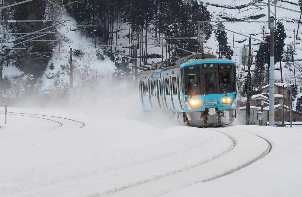 有名撮影地でもある倶利伽羅カーブでの雪景色を撮りたくて、積雪のある寒い日に撮影に行きました。