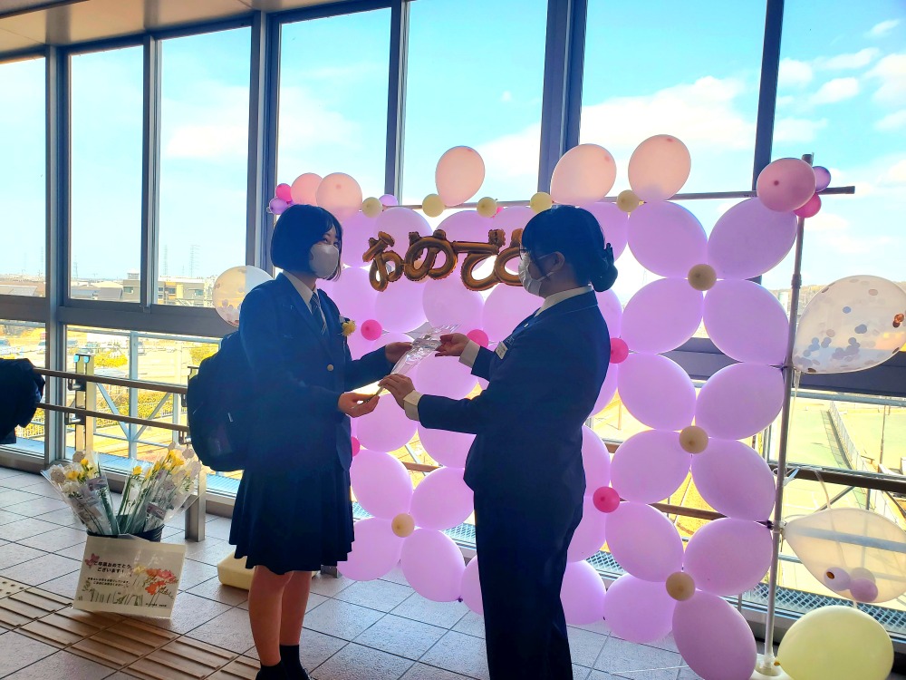 あわせて、当社社員が制作したバルーンアートおよびメッセージボードを展示し、卒業生の新たな門出をお祝いします。