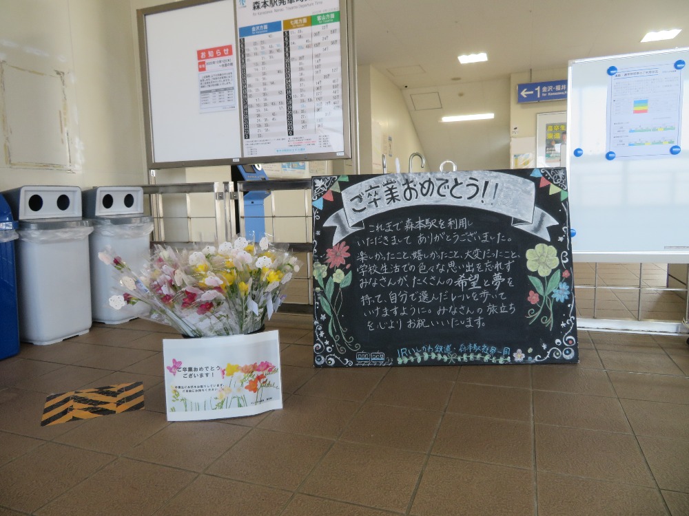 IRいしかわ鉄道では、沿線の高校を卒業する鉄道利用の高校生に、石川県が普及を図る花であるエアリーフローラを配布します。東金沢駅、森本駅、津幡駅のコンコースで、これまでの鉄道利用の感謝を込めてお渡しします。