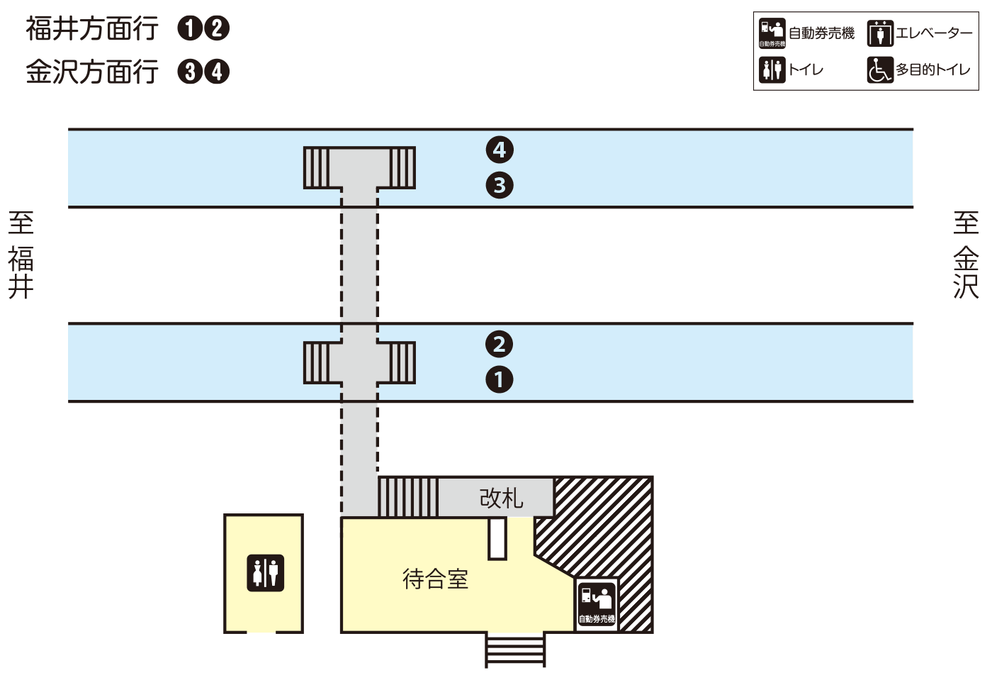 | エレベーター | 視覚障がい者誘導用ブロック | 多目的トイレ | 多機能型券売機 | 音響案内 |