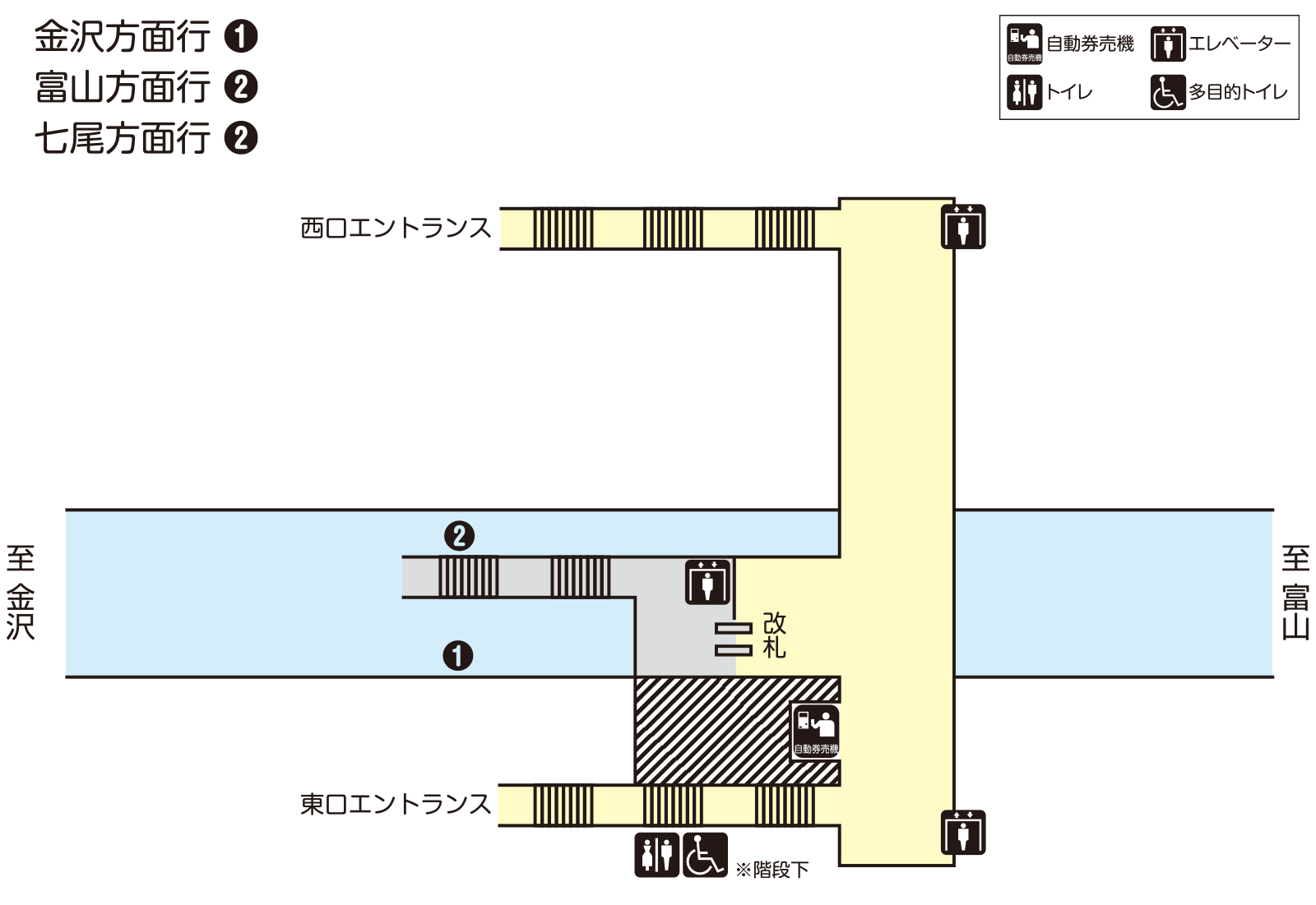 | エレベーター | 視覚障がい者誘導用ブロック | 多目的トイレ | 多機能型券売機 | 音響案内 |