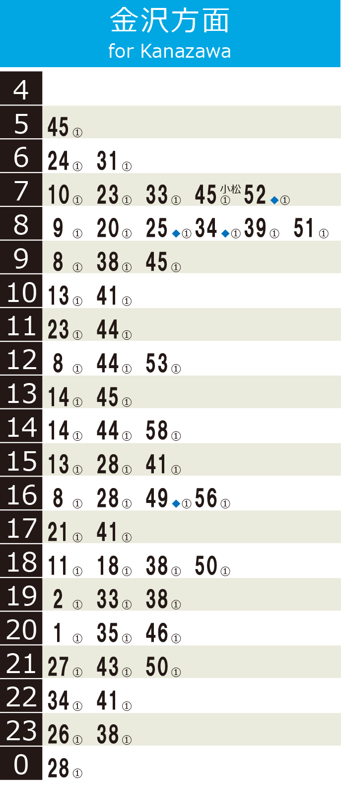 | 西金沢にしかなざわ | 3,600 | 10,270 | 19,450 |