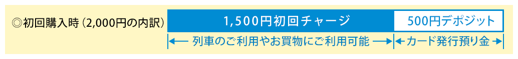 新規購入の際は、定期運賃に加えデポジット(カード発行預り金500円)が必要です。